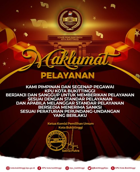 #TemanPemilih, KPU Kota Bukittinggi sebagai institusi pelayanan publik berkomitmen akan melayani masyarakat Kota Bukittinggi sesuai dengan ketentuan yang berlaku.