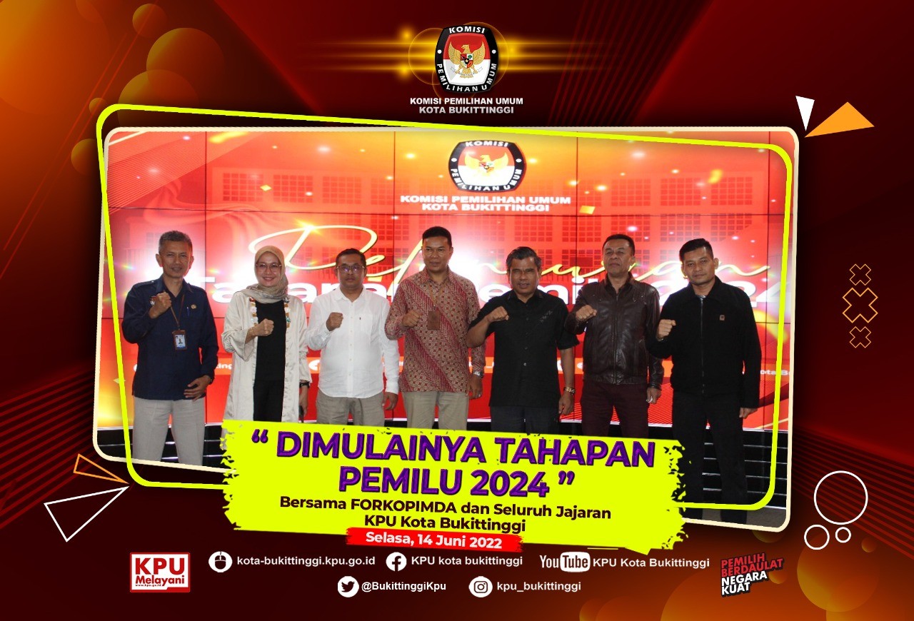 Sesuai dengan asas pemilu yang reguler dan tetap, tanggal 14 Juni 2022 merupakan hari dimulainya tahapan pemilu 2024 yaitu 20 (dua puluh) bulan sebelum pemungutan suara 14 Februari 2024. Acara peluncuran tahapan pemilu 2024 ini disaksikan langsung secara daring oleh Ketua KPU Kota Bukittinggi, Heldo Aura dan Divisi Sosialaisasi Pendidikan Pemilih Partisipasi Masyarakat dan Sumber Daya Manusia SP3MSDM, Benny Aziz bersama Forkopimda Kota Bukittinggi di Bukittinggi Command Center, Balai Kota Bukittinggi.