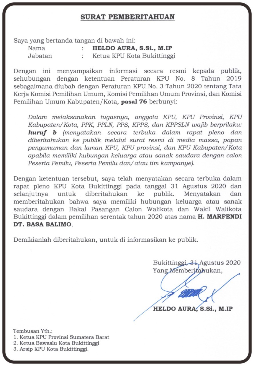 Pemberitahuan Ketua KPU Kota Bukittinggi