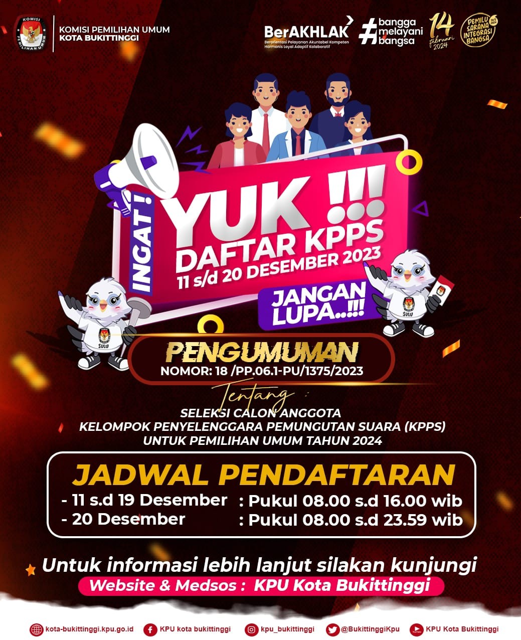 PENDAFTARAN KPPS PEMILU TAHUN 2024 KPU KOTA BUKITTINGGI