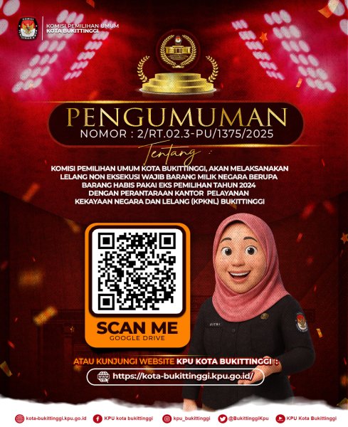 Yuk simak informasi selengkapnya pada QR Code diatas , atau pada website KPU Kota Bukittinggi atau membaca pengumuman di kantor KPU Kota Bukittinggi.