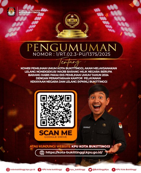 Yuk simak informasi selengkapnya pada QR Code diatas , atau pada website KPU Kota Bukittinggi atau membaca pengumuman di kantor KPU Kota Bukittinggi.