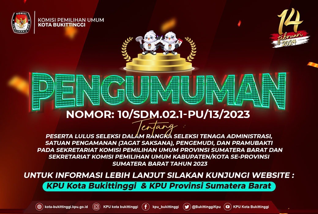 PENGUMUMAN LULUS SELEKSI TENAGA ADM, PENGAMANAN, PENGEMUDI, & PRAMUBAKTI DI KPU PROV/KAB/KOTA SE-SUMATERA BARAT TAHUN 2023