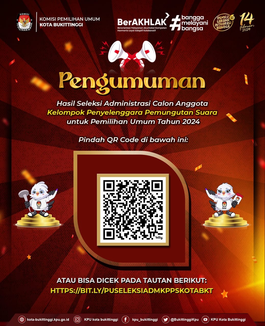 Pengumuman seleksi administrasi calon anggota KPPS untuk Pemilu Tahun 2024 se-Kota Bukittinggi