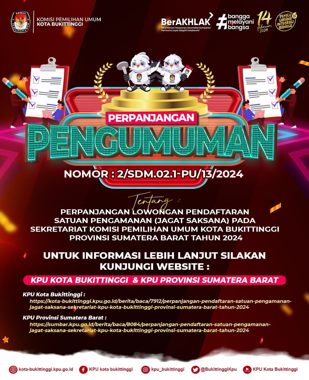 Perpanjangan Pendaftaran Satuan Pengamanan (Jagat Saksana) Sekretariat KPU Kota Bukittinggi Provinsi Sumatera Barat Tahun 2024