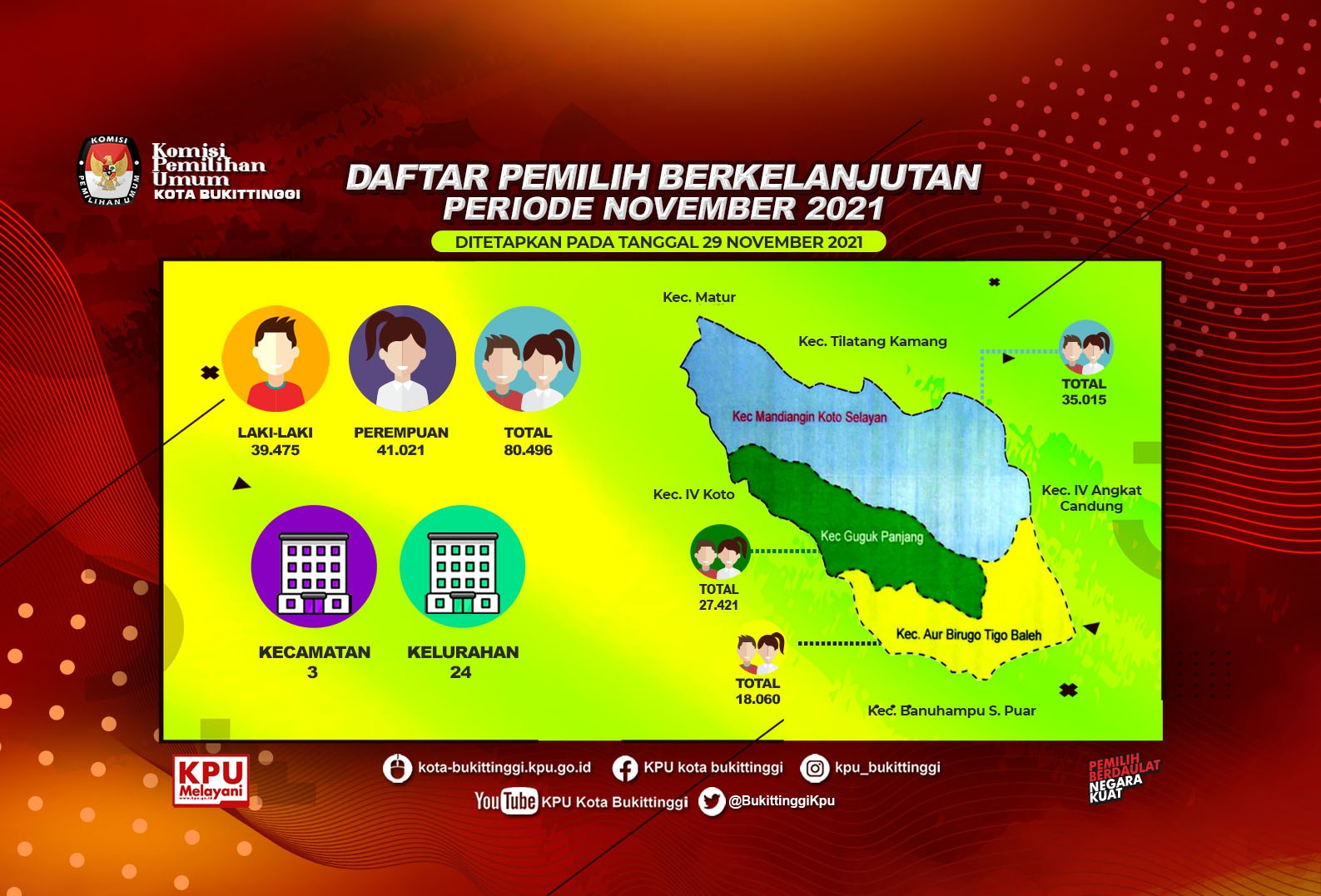 Pengumuman Daftar Pemilih Berkelanjutan (DPB) periode bulan November 2021 Kota Bukittinggi Senin, 29 November 2021 00:00 668 BA DPB NOVEMBER 2021 DAN BY NAME Baca Selengkapnya