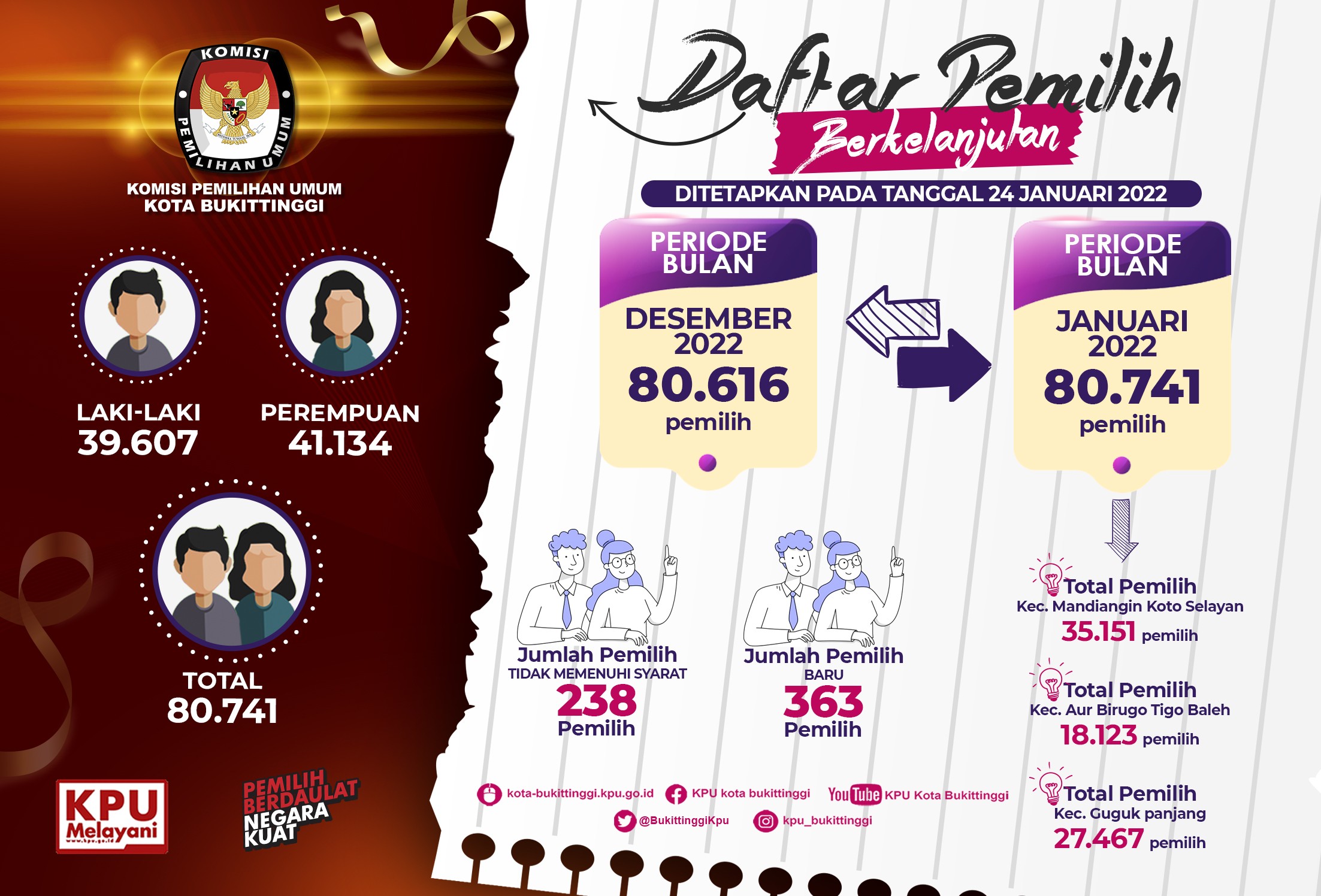 Pengumuman Daftar Pemilih Berkelanjutan (DPB) periode bulan Desember 2021 Kota Bukittinggi Kamis, 23 Desember 2021 00:00 683 BA DPB DESEMBER 2021 Baca Selengkapnya