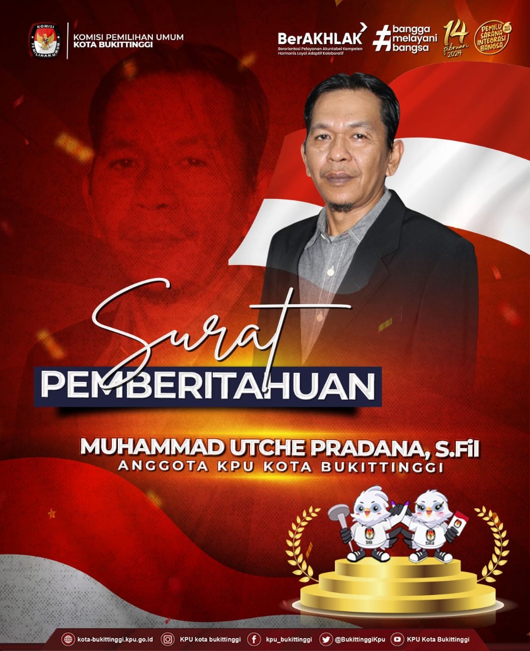 #TemanPemilih, berikut pemberitahuan secara terbuka salah satu anggota KPU Kota Bukittinggi, Muhammad Utche Pradana dalam hal mempunyai hubungan dengan peserta pemilu.